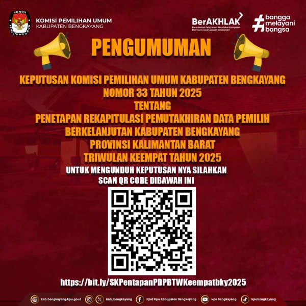 Bengkayang, 2 Oktober 2025 – Komisi Pemilihan Umum (KPU) Kabupaten Bengkayang menetapkan sebanyak 211.839 pemilih dalam Pemutakhiran Data Pemilih Berkelanjutan (PDPB) untuk Triwulan III Tahun 2025. Ketua KPU Bengkayang, Heribertus, mengatakan penetapan dilakukan melalui rapat pleno internal. “Data pemilih tersebut telah kita tetapkan dalam rapat pleno,” ujarnya usai kegiatan, Kamis (2/10). Rincian data menunjukkan pemilih laki-laki mencapai 110.038 orang, sementara perempuan berjumlah 101.801 orang. Jumlah ini meningkat dibandingkan triwulan II yang mencatat 209.107 pemilih. Ketua Divisi Data Pemilih dan Perencanaan KPU Bengkayang, Mujidi, menambahkan terdapat 227 pemilih tidak memenuhi syarat (TMS). “Rinciannya 13 orang meninggal dunia, 10 orang masuk sebagai anggota Polri, dan 204 orang pindah domisili,” jelasnya. Penetapan ini sejalan dengan program nasional KPU RI melalui Peraturan KPU Nomor 1 Tahun 2025 tentang Pemutakhiran Data Pemilih Berkelanjutan. Regulasi tersebut mewajibkan KPU Kabupaten/Kota melakukan pemutakhiran data paling sedikit sekali setiap tiga bulan, sementara KPU Provinsi dan KPU RI melakukannya minimal setiap enam bulan. Kebijakan ini bertujuan menjaga daftar pemilih tetap akurat, mutakhir, dan komprehensif, sekaligus memastikan perlindungan data pribadi masyarakat. Dalam pelaksanaannya, KPU menerapkan prinsip inklusif, partisipatif, terbuka, dan akuntabel, dengan mendorong penggunaan sistem digital agar proses pemutakhiran lebih efisien. Dengan penetapan triwulan III ini, KPU Bengkayang menegaskan komitmennya mendukung program nasional pemutakhiran data. Data yang diperbarui secara berkala akan menjadi dasar penting dalam penyusunan daftar pemilih untuk pemilu maupun pemilihan kepala daerah mendatang. ....