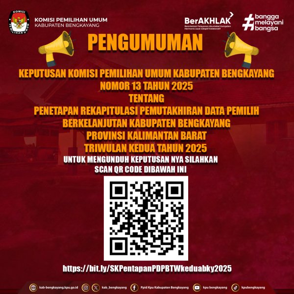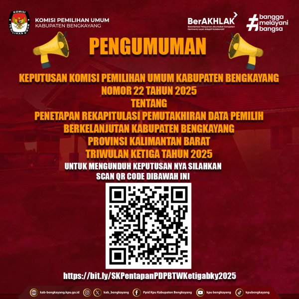 kab-bengkayang.kpu.go.id – Berikut disampaikan Keputusan Komisi Pemilihan Umum Kabupaten Bengkayang Nomor 22 Tahun 2025 Tentang Penetapan Rekapitulasi Pemutakhiran Data Pemilih Berkelanjutan Kabupaten Bengkayang Provinsi Kalimantan Barat Triwulan Ketiga Tahun 2025.
