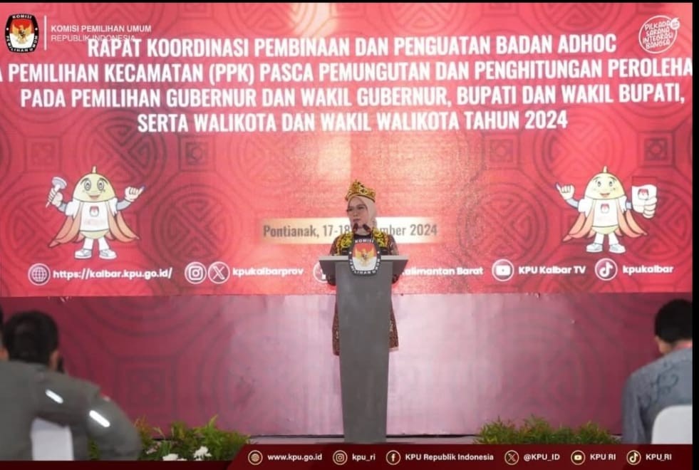 kab-bengkayang.kpu.go.id – Pontianak. Komisi Pemilihan Umum Provinsi Kalimantan Barat menyelenggarakan Rapat Koordinasi Pembinaan dan Penguatan Badan Adhoc Panitia Pemilihan Kecamatan (PPK) Pasca Pemungutan dan Penghitungan Perolehan Suara pada Pemilihan Gubernur dan Wakil Gubernur, Bupati dan Wakil Bupati serta Walikota dan Wakil Walikota Tahun 2024 di Pontianak Convention Center. (17-18/12/2024).
