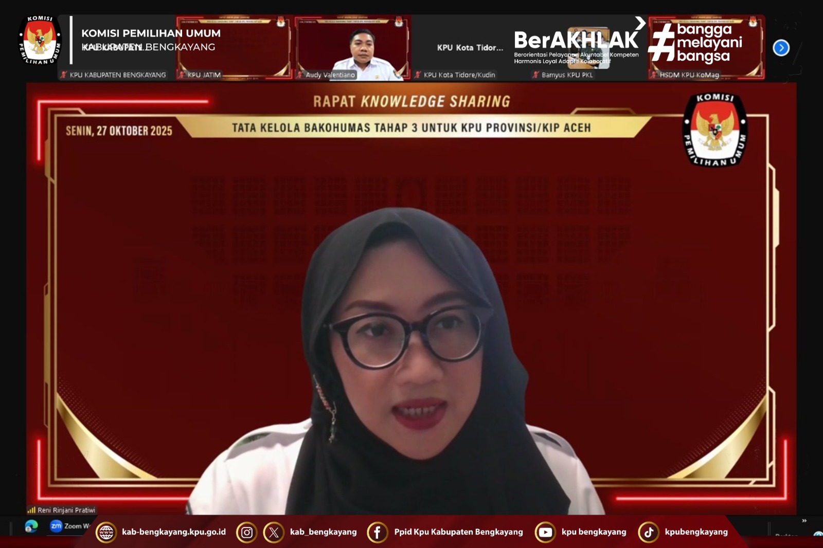 Bengkayang — Komisi Pemilihan Umum (KPU) Kabupaten Bengkayang mengikuti kegiatan Rapat Knowledge Sharing Tata Kelola Bakohumas Tahap 3 yang diselenggarakan secara daring oleh KPU Republik Indonesia pada Senin (27/10/2025).