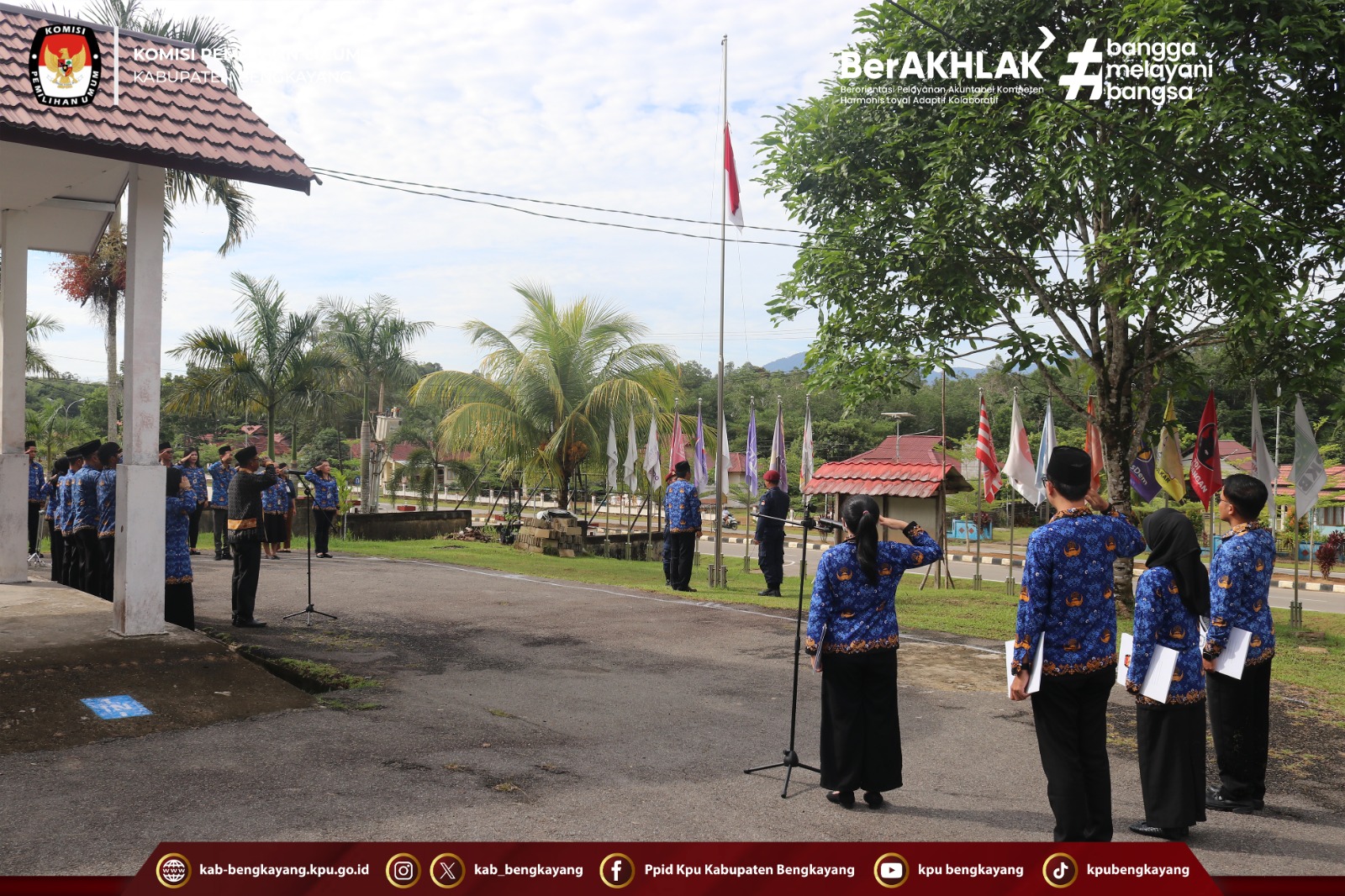 Upacara diikuti oleh Anggota KPU Kabupaten Bengkayang Mujidi, Sekretaris KPU Kabupaten Bengkayang, para Kepala Sub Bagian, serta seluruh ASN dan tenaga non-ASN di lingkungan Sekretariat KPU Kabupaten Bengkayang.