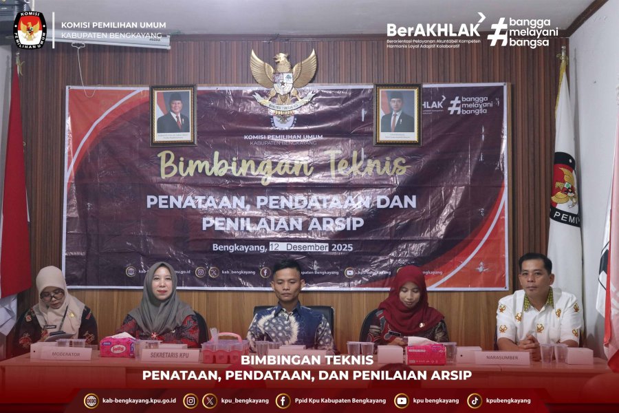 Bengkayang, 12 Desember 2025 — Komisi Pemilihan Umum (KPU) Kabupaten Bengkayang melaksanakan kegiatan Bimbingan Teknis Penataan, Pendataan dan Penilaian Arsip yang berlangsung di Aula Rapat KPU Kabupaten Bengkayang mulai pukul 09.00 WIB hingga sekitar pukul 11.30 WIB. Kegiatan ini diikuti oleh seluruh pegawai KPU Kabupaten Bengkayang sebagai bagian dari upaya peningkatan kapasitas sumber daya manusia dalam pengelolaan kearsipan yang tertib, sistematis, dan sesuai regulasi.