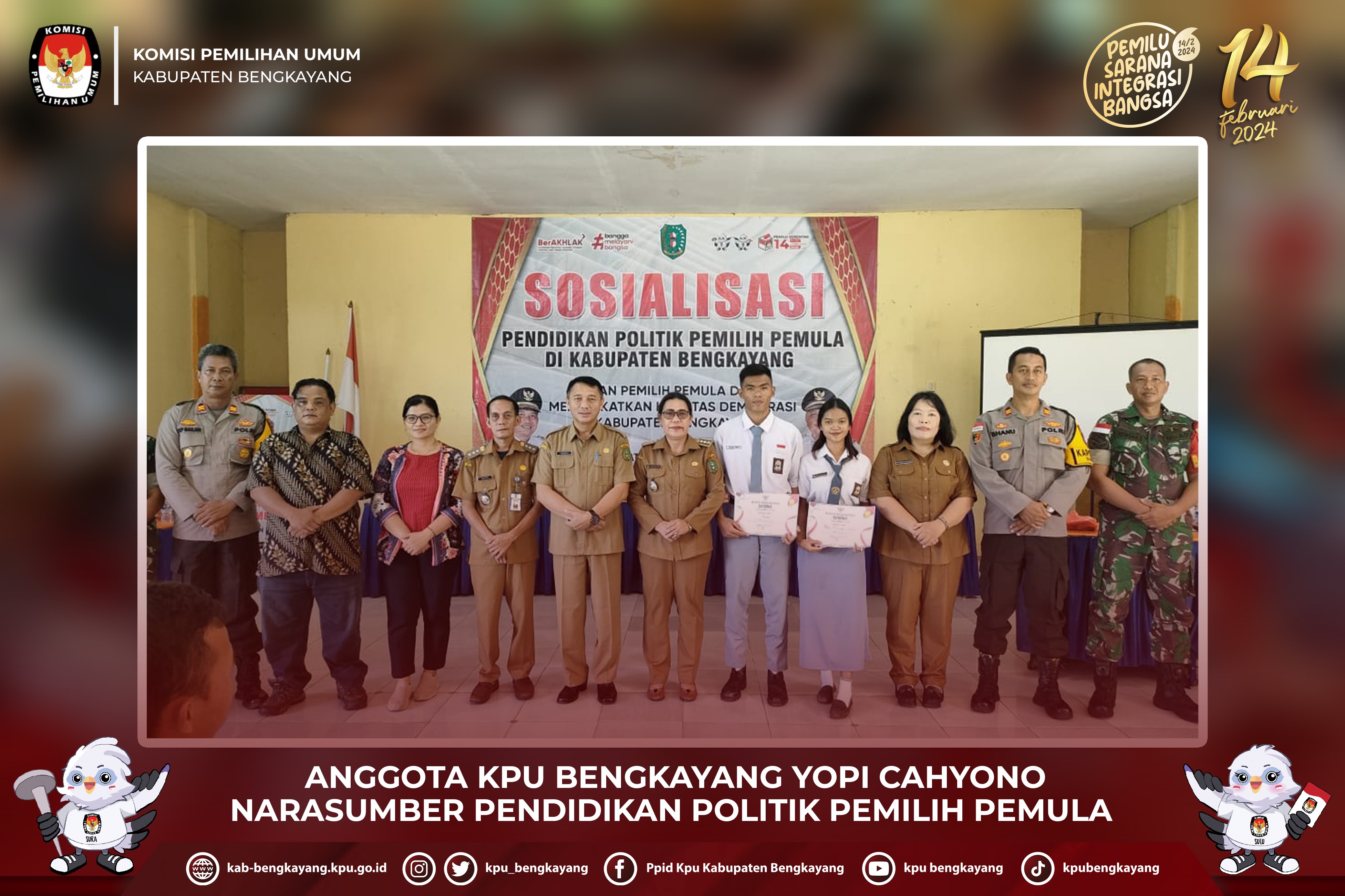 Adapun narasumber pada kegiatan Sosialisasi Kampanye Pemilu Serentak Tahun 2024 di Kawasan Pesisir ialah Komisioner KPU Kabupaten Bengkayang, Kepala Badan Kesatuan Bangsa dan Politik Kabupaten Bengkayang serta Bawaslu Kabupaten Bengkayang.