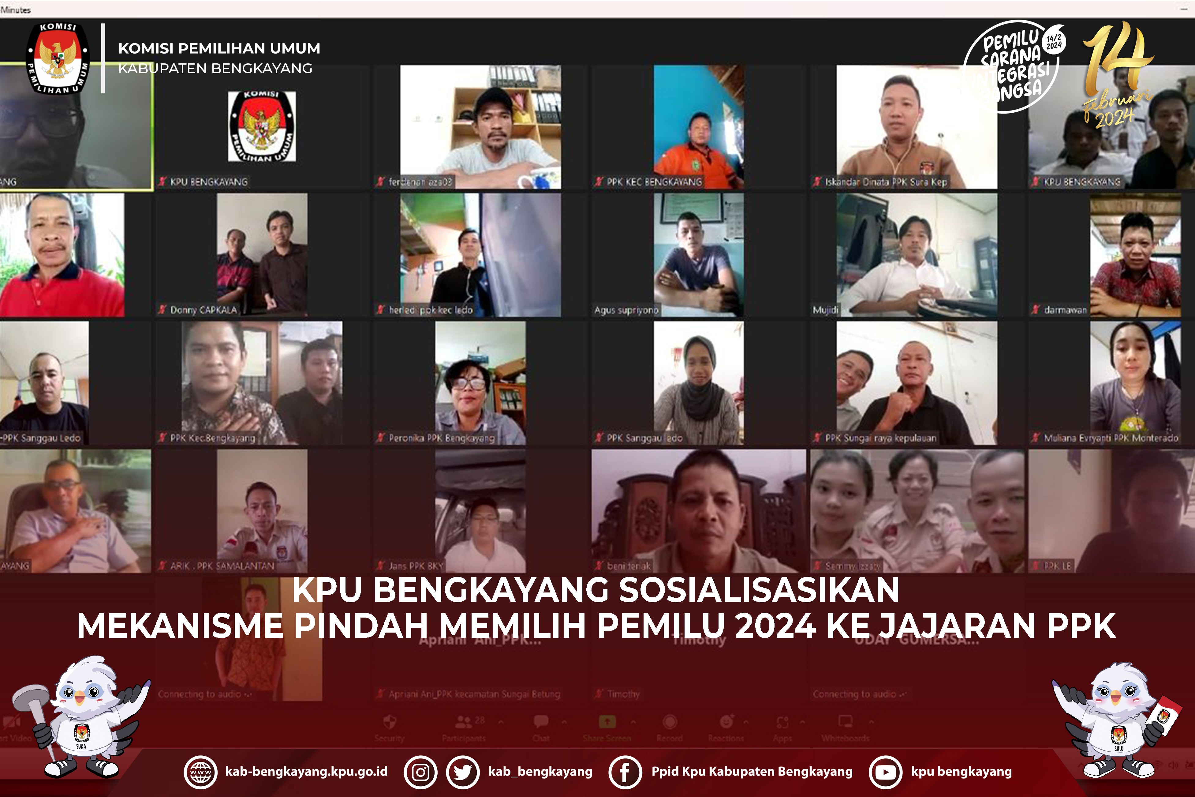 kab-bengkayang.kpu.go.id – Komisi Pemilihan Umum Kabupaten Bengkayang melakukan sosialisasi mekanisme Pindah Memilih untuk Pemilihan Umum Tahun 2024. Sosialisasi pindah memilih via zoom meetting dihadiri oleh jajaran Panitia Pemilihan Kecamatan (PPK) se Kabupaten Bengkayang, Senin (10/7). Sosialisasi mekanisme ini bertujuan untuk memastikan jajaran PPS, PPK dan KPU dapat memahami mekanisme pindah memilih sesuai dengan Peraturan KPU Republik Indonesia, Keputusan KPU Republik Indonesia dan Surat Dinas KPU Republik Indonesia. Ketua KPU Kabupaten Bengkayang, Heribertus, mengatakan pindah memilih ini mekanisme yang wajib dilakukan untuk memastikan bahwa masyarakat yang memiliki hak pilih dapat menggunakan hak pilihnya. Terkait dengan daftar pemilih tersebut diatur dalam PKPU Nomor 07 Tahun 2022, Surat Keputusan KPU Nomor 27 Tahun 2023 tentang teknis Penyusunan Daftar Pemilih, serta Surat Dinas KPU RI Nomor 695 tentang persiapan Penyusunan Daftar Pemilih Tambahan. “Berdasarkan Keputusan KPU Nomor 27, penyusunan Daftar Pemilih Tetap dimulai tanggal 22 Juni sampai dengan 7 Februari 2024 mendatang,” kata Heribertus. Berdasarkan Surat Dinas KPU RI 695, penyusunan dibagi dua kelompok yakni kelompok pertama mulai tanggal 22 Juni sampai dengan 15 Januari 2024, dengan sejumlah ketentuan sesuai aturan. Kemudian kelompok ke dua dimulai tanggal 15 Januari 2024 sampai dengan 7 Februari 2024. Kelompok kedua, khusus untuk yang sakit, tertimpa bencana, pemilih yang menjadi tahanan, dan pemilih yang menjalankan tugas saat pemungutan suara. “Mekanisme ini harus dipahami teman-teman PPK dan PPS, dan selanjutnya dapat dipelajari sesuai surat dinas KPU RI,” jelas Heribertus. (Humas KPU)