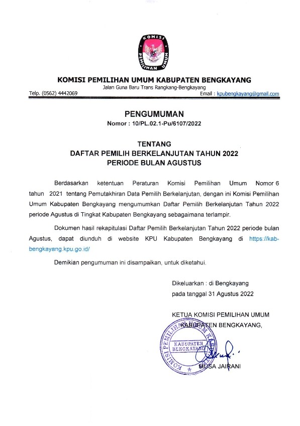 PENGUMUMAN DAFTAR PEMILIH BERKELANJUTAN PERIODE BULAN AGUSTUS 2022 Kamis, 01 Januari 1970 07:00 959 DPB Bulan AGUSTUS Tahun 2022 <<Download>> Baca Selengkapnya